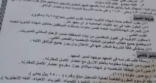 إعـلان يعلن معهد العلوم الصحية بسيئون – عن بدء التسجيل للعام الدراسي 2018-2019 ابتداء من يوم الأحد 15-7-2018م، وحتى الخميس 2-8-2018م، وذلك في المساقات التالية: 1-تمريض تقني( بنين+بنات) 2-ضابط صحة عامة( بنين فقط) 3-قابلة تقنية( بنات فقط) 4-فني مختبر ( بنين+بنات)-( نظام التعليم الموازي) شريطة أن يكون المتقدم حاصل على …